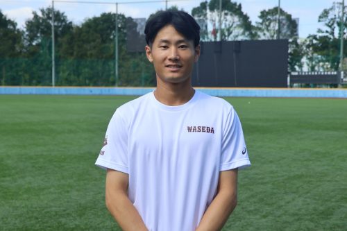 小澤(小澤周平・4年・内・スポ・健大高崎)は、頼れるキャプテンです。みんなを引っ張ってくれてありがとう。入部当初から同じ内野手として意識していました。負けたくない思いでここまでやってきました。この前、野球部の1年生ばかりいる授業に出席して、なんかビビられてた気がするって言ってたけど、ちょっと気づくのが遅いですね。良い意味で威厳があるってことです。