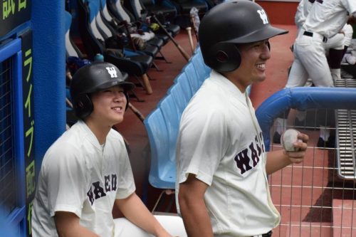 後日談ですが愛媛大会の日、オール早慶戦の遠征に帯同していなかったメンバーは、東京ドームで都市対抗野球を観戦していました。観戦中に私のタイムリーヒットの速報が入ったらしく、都市対抗そっちのけで早稲田の部員が座っていた一角がざわついたという話を聞き、とても嬉しかったです。