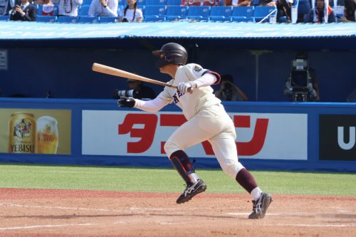早慶戦でも、渋谷の魅力であるスピード感あふれる堅実な守備に期待しています。また意外とパンチ力のある打撃で、本物の「ダイヤモンド一周」を見たいです。」