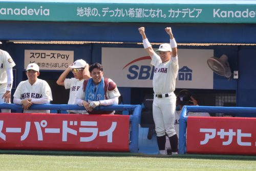 2戦目で先発した煌稀はもちろん、1戦目で樹の後を投げた佐宗(佐宗翼・1年・投・スポ・星稜)は、ランナーを出したものの無失点で投げ切り、下級生の成長が見られました。優勝は逃してしまいましたが、来シーズン以降の早稲田にとって明るい材料になりました。