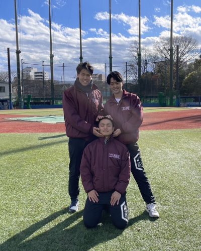 健伸(前田健伸・4年・内・商・大阪桐蔭)とは遠征のたびに同部屋で、喧嘩もしたけどやっぱり相方としてしっくりきます。これからも色々と助け合っていこうね。一輝(松江一輝・4年・内・人間・桐光学園)はいつも馬鹿にしてきますが根はいいやつで何かと頼りにしています。2人とはここには書ききれない思い出があります。またゆっくり話そうね。あれもこれも3人だったから支え合ってここまでくることができたと思います。