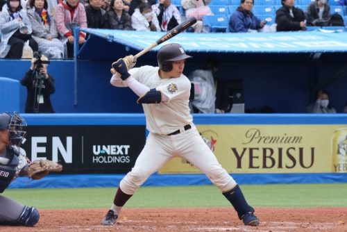 1年生の頃は蛭間さん(蛭間拓哉・R5卒)によく面倒を見てもらいました。いろんな場面に誘ってもらって多くを吸収することができました。野球のことだけでなく考え方など参考になることばかりでした。今でも何かあるたびに連絡をいただいたり気にかけてもらって本当にありがたいです。理想の先輩像はずっと蛭間さんです。