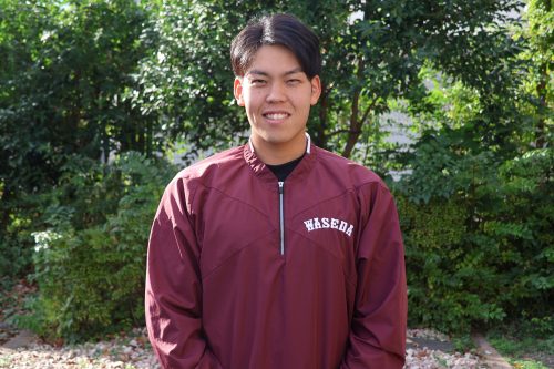 早稲田大学に憧れを抱くきっかけとなったのは当時テレビで見た早慶戦です。いつかこの舞台で大好きな野球をしてみたいと子供ながらに強く思いました。高校は悩みましたが浦和学院に進学しました。レベルの高い早稲田で活躍するためには高校の過ごし方が重要だと考えたからです。早稲田大学に進めるかわかりませんでしたが、自分を信じて決めました。今考えると良い選択をしたなと思います。高校での3年間は厳しくも人間的に成長することのできた時間でした。甲子園にも出場することができたり、こうして早稲田でプレーできているのも、森監督はじめ教え導いてくれたスタッフの方々のおかげだと思っています。本当にありがとうございます。