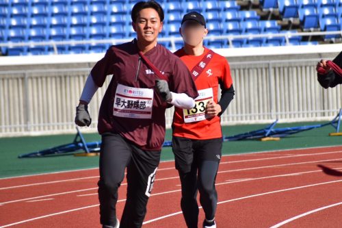 俵積田も小室同様、2周走り切りました。俵積田は、入部した当初から足が速いと噂になっていたので、私もとても注目していました。プレッシャーがかかる中、トップバッターとしてポジション取りも冷静にこなし、チームに大きく貢献してくれました。