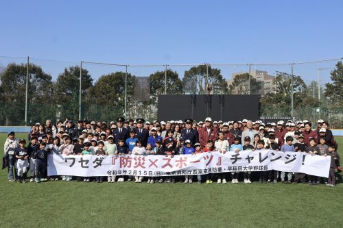 その後、記念撮影を行い、『ワセダ「防災×スポーツ」チャレンジ!』は大盛況のうちに幕を閉じました。